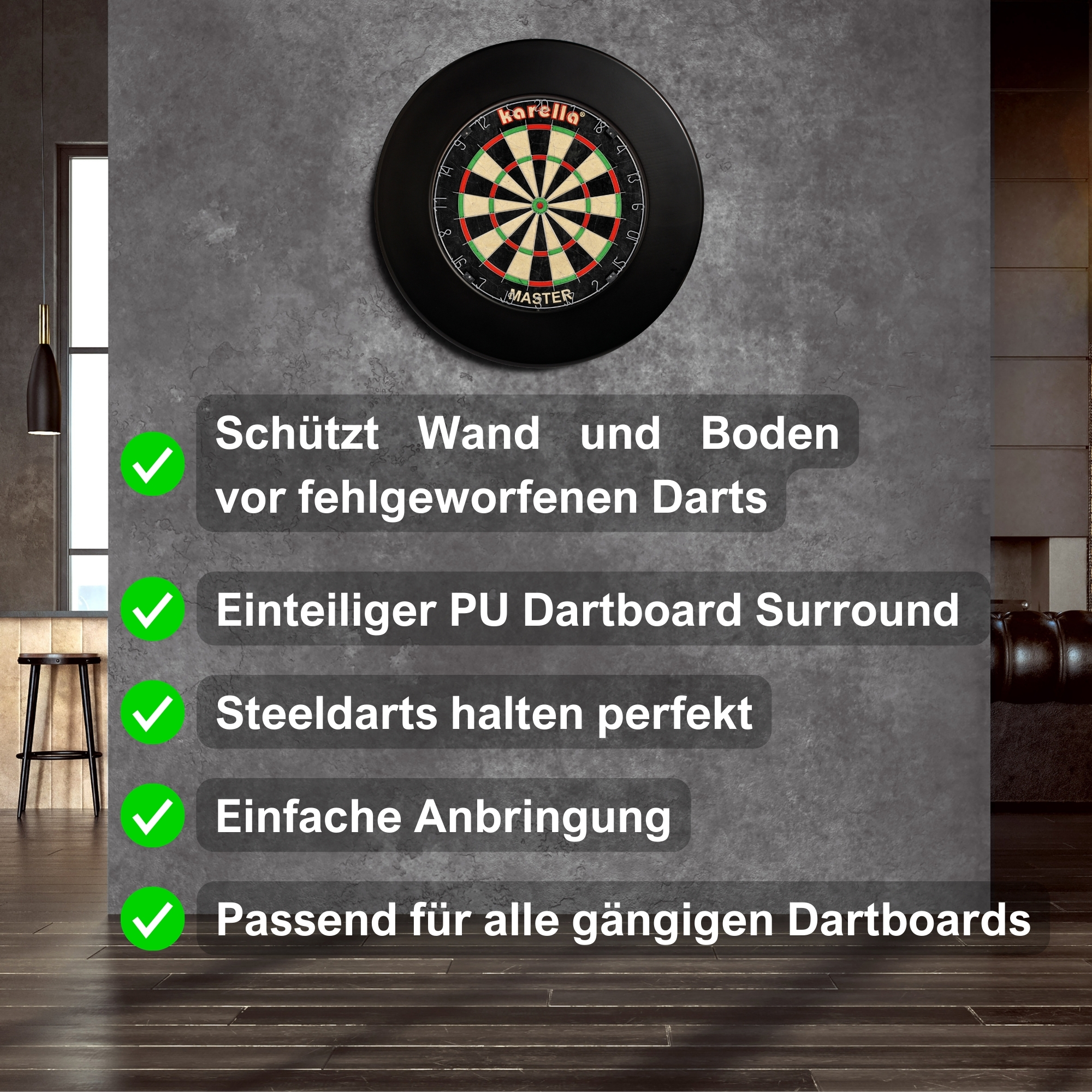 Catchring auf jedes gängige Dartboard, ohne großen Kraftaufwand, aufgesetzt werden. Der Karella Surround besteht aus hochwertigem